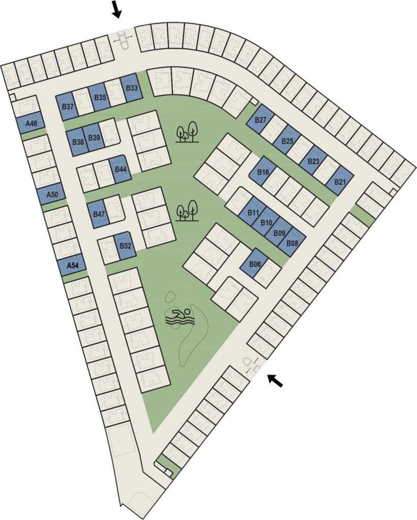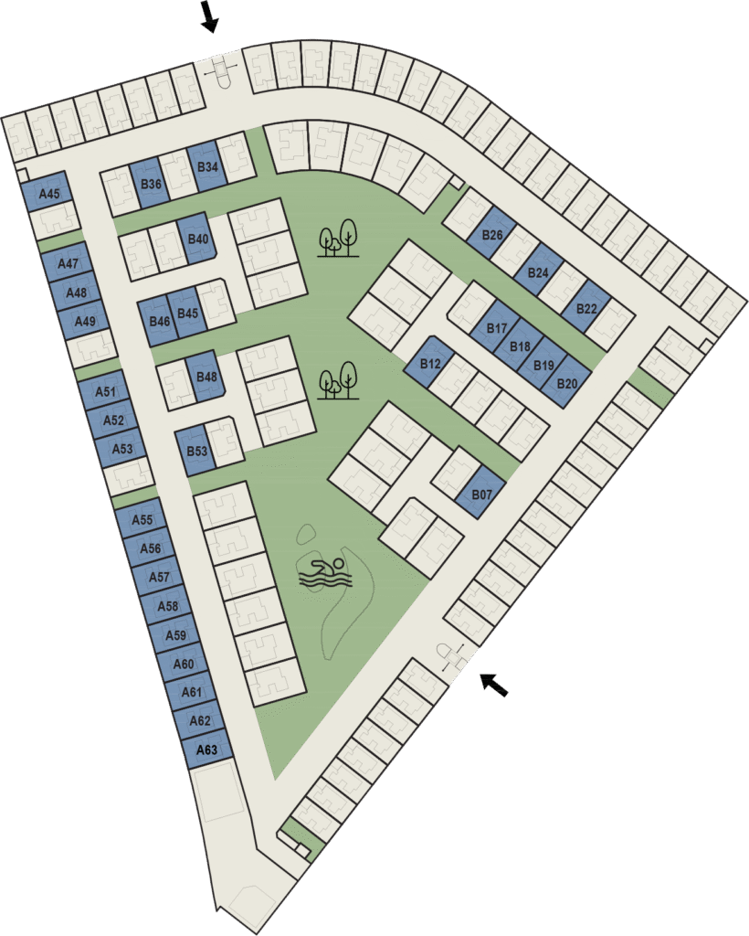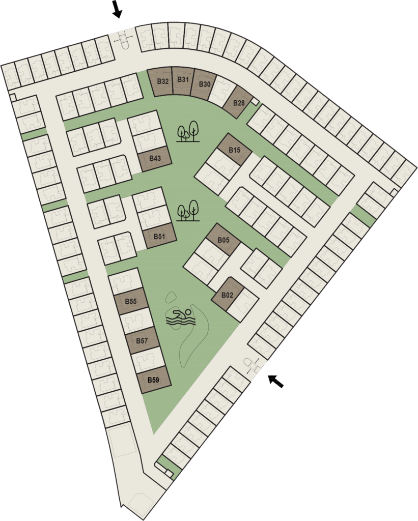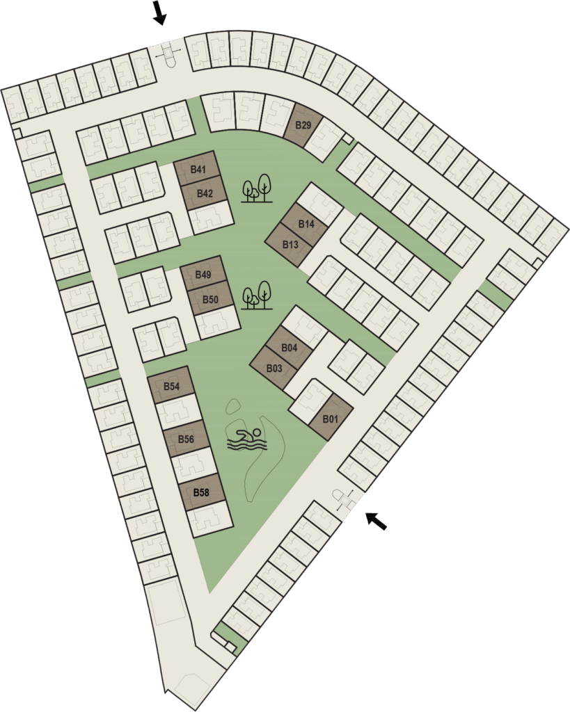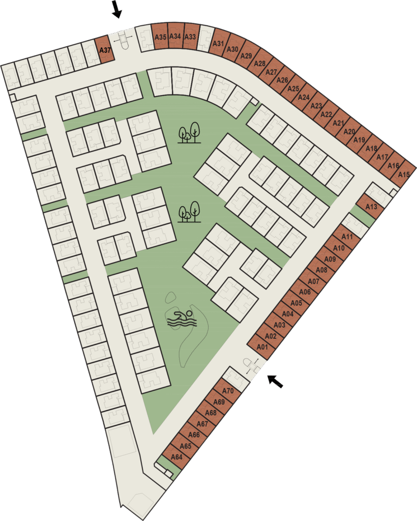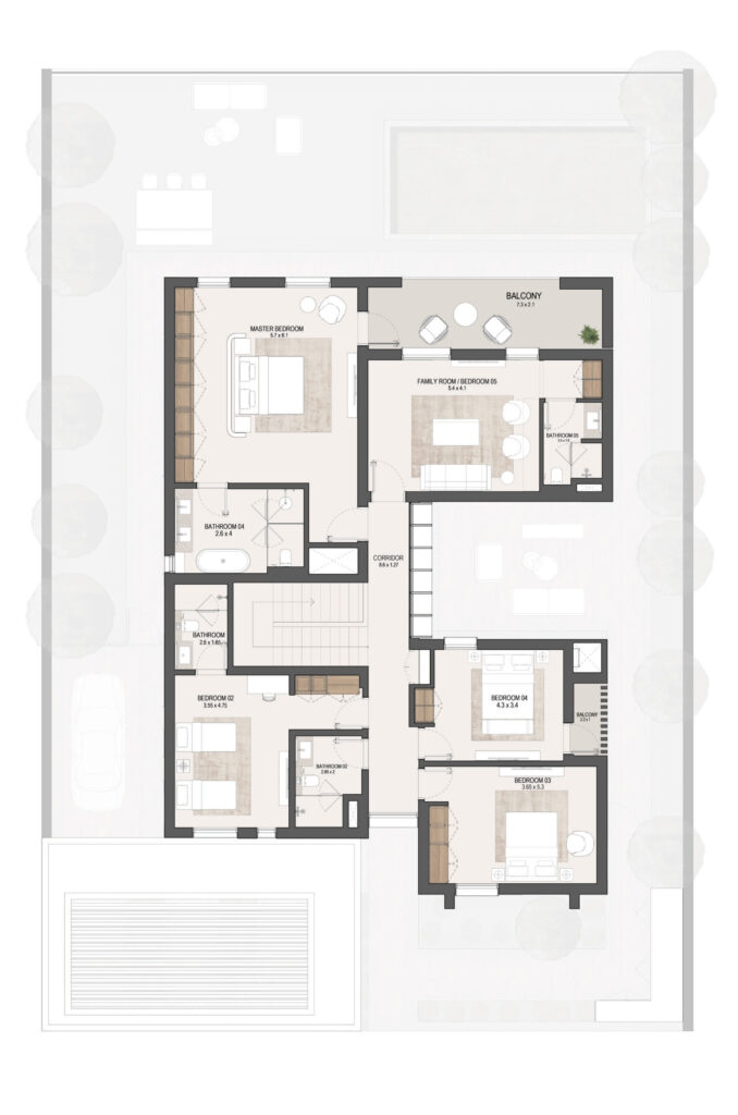 Fay Gardens villa floor plans include multiple configurations of 3, 4 and 5-bedroom layouts. All homes feature open-plan living and dining areas, modern kitchens, staff rooms, storage spaces, outdoor terraces and private gardens.